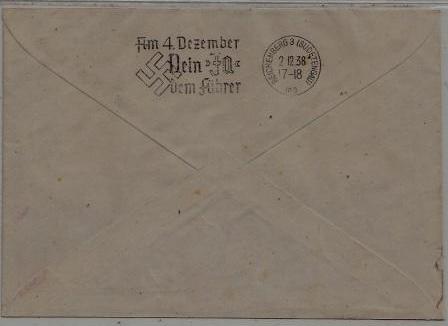 Germany Zeppelin cover Sudetenland flight 1.12.38