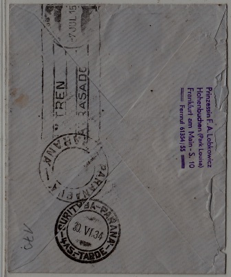 Germany/Brazil/Argentina Zeppelin cover 23.6.34 Frankfurt