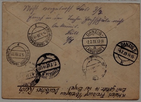Germany/Danzig registered airmail cover 1.7.39 Karlsruhe