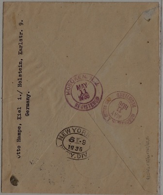 Germany/USA registered Zeppelin cover 5.5.36 Frankfurt