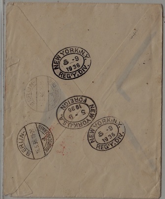 Germany/USA registered Zeppelin cover 5.5.36 Frankfurt