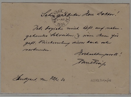 Germany/USA Zeppelin card 1.NAF 7.5.36 crease