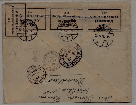 Germany/USA/Canada registered Zeppelin cover 5.5.36